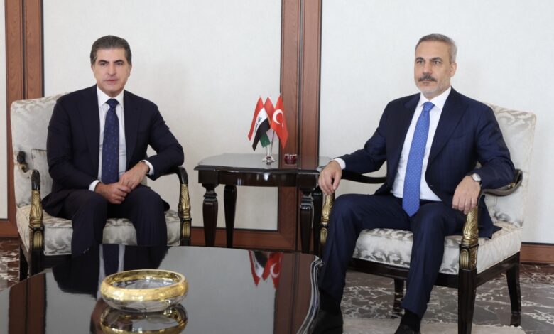 سهرۆکێ هەرێما كوردستانێ نێچیرڤان بارزانی ڕۆژا پێنجشهمێ ۹ێ جۆتمهها ۲۰۲٥ئان ل ئهنقهرێ، د چارچۆڤهیا سهردانا خوە یا فەرمی یا بۆ ترکیێ دا، دگەل وهزیرێ دهرڤه یێ تركیێ هاکان فیدان جڤیا.